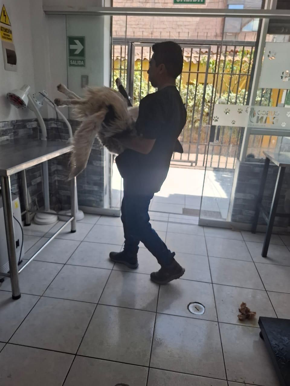 Así que, angustiada y desesperada, al aterrizar buscó a una amiga protectora de animales para pedirle apoyo en buscar contactos en Perú que pudieran salvar a ese peludito lo más rápido posible. Afortunadamente, después de muchas llamadas, logró poner en contacto a la encargada de turismo en ese país con Adri, quien al comentarle la situación y que una vez que el peludito se encontrara en buenas condiciones para viajar lo traería a México y se haría cargo de él; se ofreció en llevarlo al veterinario por medio de una Asociación protectora de animales, sólo que no alcanzarían a cubrir los costos de la atención que el peludito requería pero Adri les envió de inmediato la cantidad monetaria para hacerlo y afortunadamente se salvó.